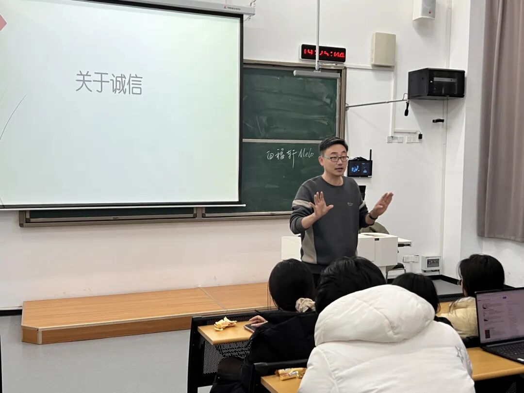 为进一步厚植崇德尚信的班级文化根基,引导广大学子树立明礼守信、遵规守纪的价值观。12月23日,新闻传播学院第十五班集体组织开展了以“秉诚信之德,守纪律之矩” 为主题的班会。此次班会由辅导员高烨朴老师主持。