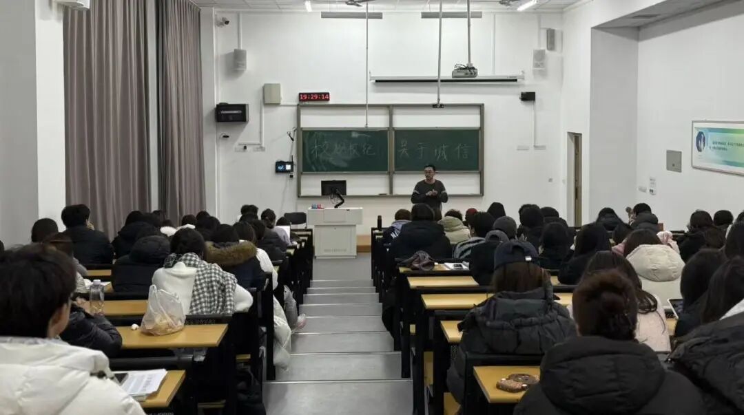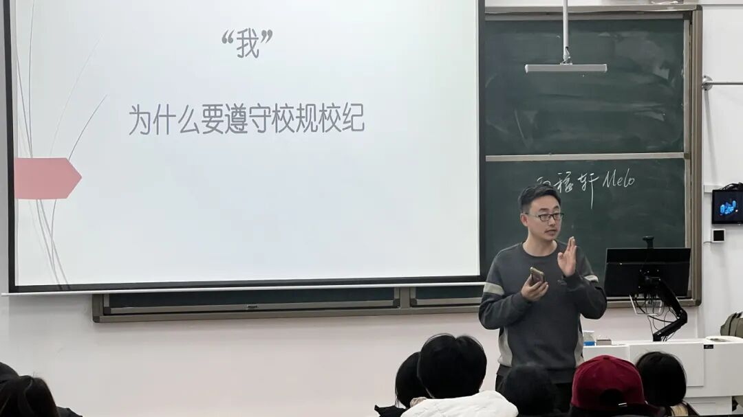 班会伊始,高烨朴老师强调偶尔的“小违规”不算什么,但“千里之堤,溃于蚁穴”,一次不守规矩的侥幸,可能会养成漠视规则的习惯;一次不以为然的放纵,可能会埋下影响未来的隐患;处分不是目的,惩戒的背后,是希望同学们能引以为戒,及时纠正偏差,避免在成长的道路上走弯路。接着,高烨朴老师聚焦期末考风考纪建设,通过剖析典型案例,揭示学术不端行为对个人征信与学风生态的深层危害,警示同学们摒弃投机取巧的侥幸心态。最后,高烨朴老师勉励同学们既要在日常点滴中坚守诚信底线,做到言必信、行必果,更要以纪律为尺规范言行,争做明礼崇德、遵规守纪的时代青年。