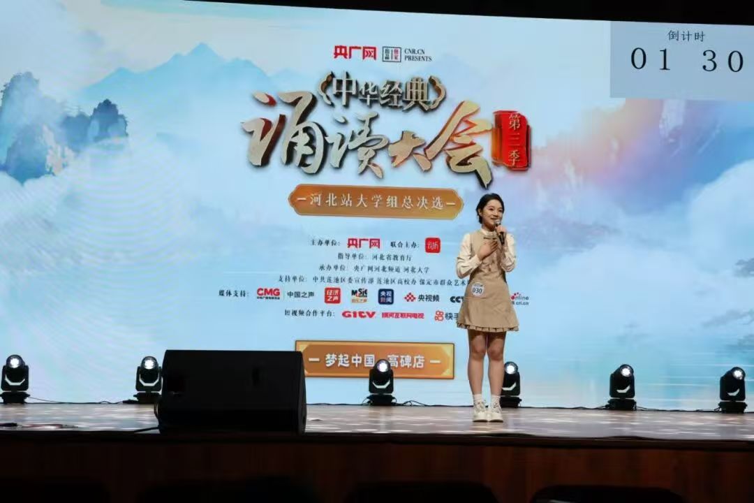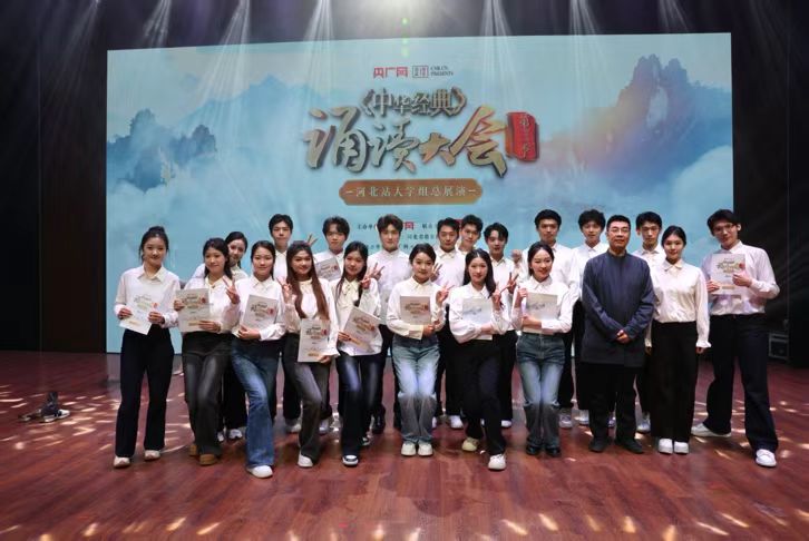 近日,由中央广播电视总台央广网主办的中华经典诵读大会(第三季)河北站大学组总决选在河北大学圆满落幕。河北传媒学院新闻传播学院选派20名学生组成代表队参赛,凭借扎实的专业素养、饱满的情感表达与创新的舞台呈现,在激烈竞争中脱颖而出,共获一等奖(张戬、满怡君)两项,二等奖5项,三等奖13项,充分展现了我院在“项目制·舞台论·竞赛场”育人模式下的丰硕成果。