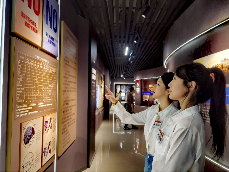 在基地民警引导下,师生们参观了院区及专业展厅。通过实地观摩与讲解,大家直观了解了成瘾行为的严重危害,以及基地科学评估、干预与康复训练的工作理念,对成瘾预防有了更深刻的认识。
