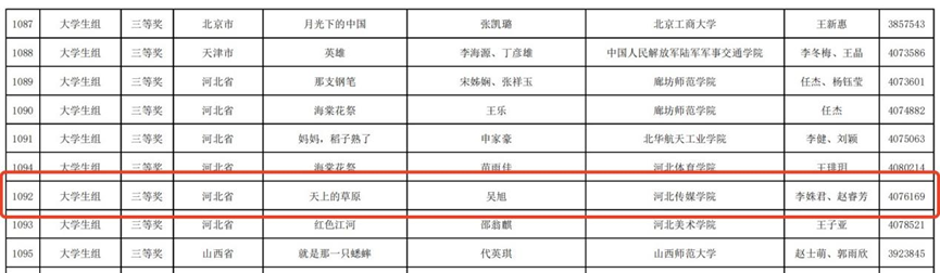 近日,由教育部、国家语委主办的第七届中华经典诵写讲大赛“诵读中国”经典诵读大赛评选结果正式揭晓。我校师生凭借卓越表现斩获多项国家级奖项,其中教师组吕奕翰作品《战地日记》(指导教师:曾志华)荣获全国一等奖,大学生组包翊暄、樊武俊作品《雪落在中国的土地上》(指导教师:郎晶华)获二等奖,吴旭作品《天上的草原》(指导教师:李姝君、赵睿芳)获三等奖,充分展现我校在经典诵读教育与专业实践方面的扎实成效。